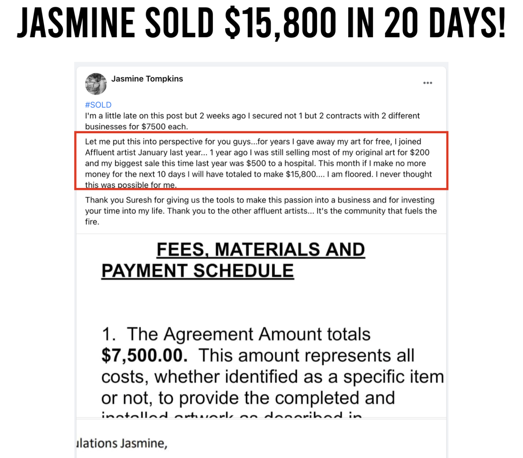 Suresh created the SOA Challenge after years of helping visual artists sell art in their first week. He's helped several artists quit their jobs and go full time.